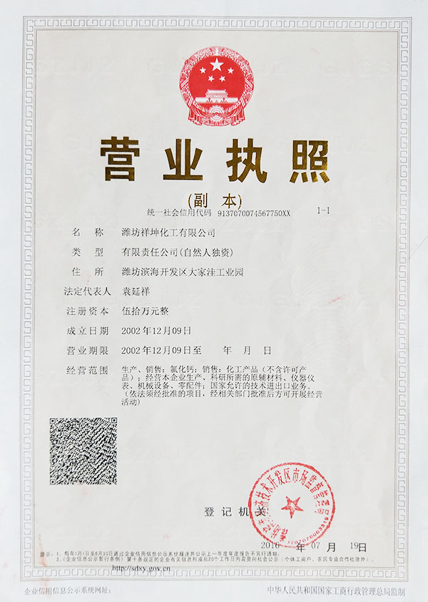 濰坊祥坤化工有限公司始建于2002年,占地12000平方米,在冊職工60余人,
